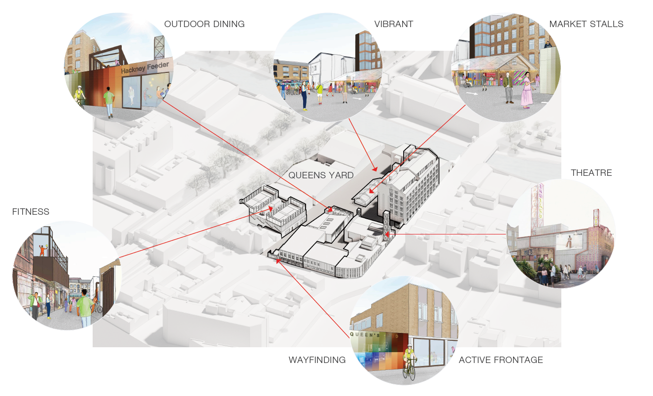 Sitting within the sensitive Fish Island and White Post Lane Conservation Area, and with a number of non-designated heritage assets within and beyond the Site, the scheme will allow for the revival of a number of underutilised buildings within Queen’s Yard, with carefully designed extensions and additions reflecting the industrial past and contemporary social use of the area.